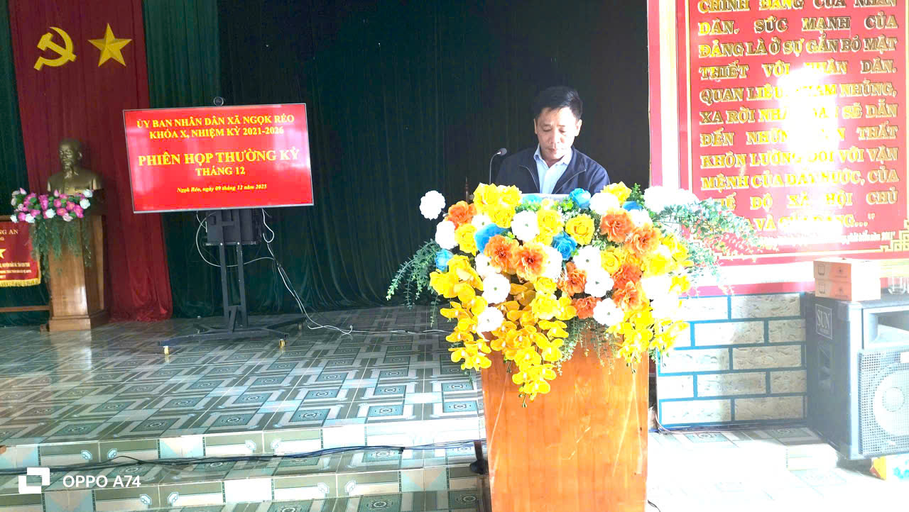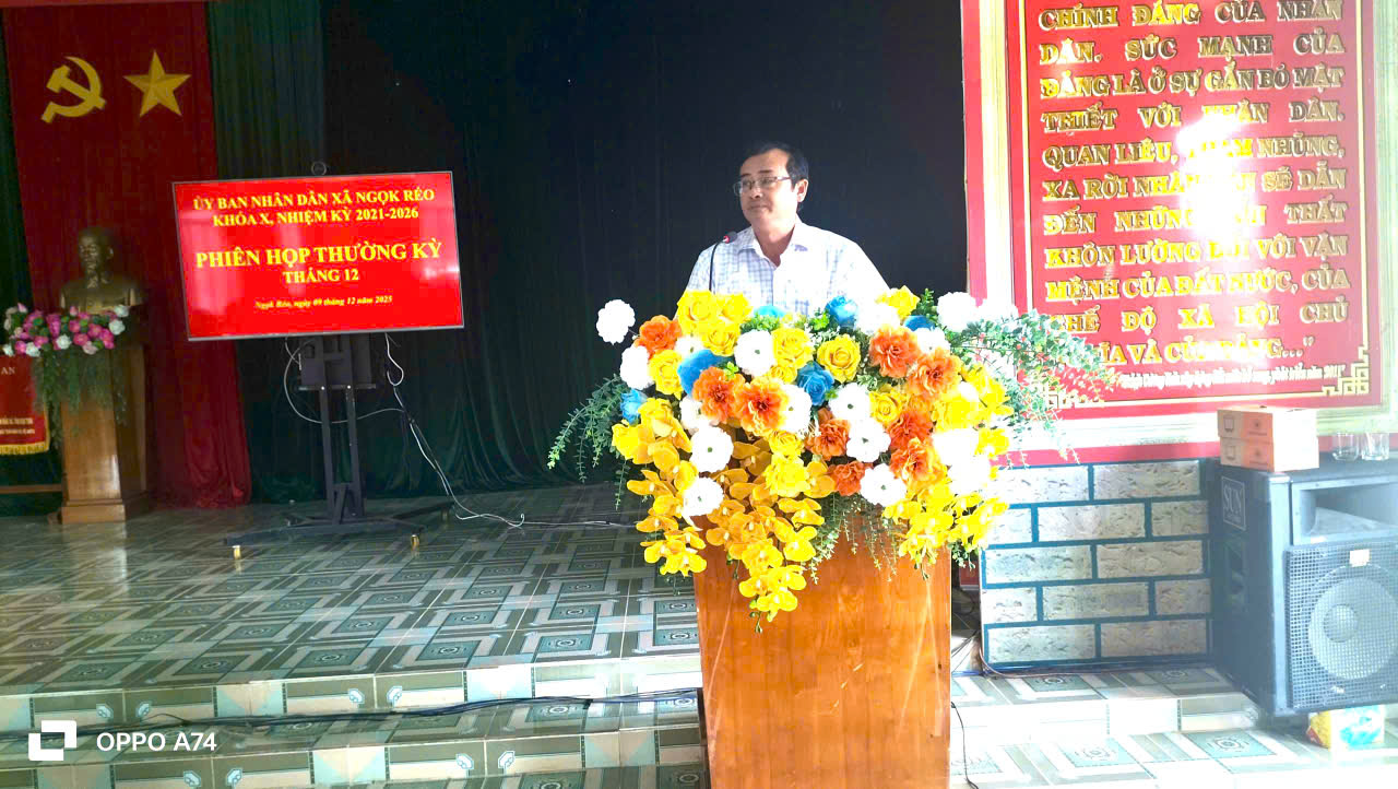 Sáng ngày 09/12/2025, Ủy ban nhân dân xã Ngọk Réo đã tổ chức Phiên họp thường kỳ tháng 12 năm 2025 nhằm đánh giá tình hình phát triển kinh tế – xã hội, quốc phòng – an ninh tháng 11 và triển khai nhiệm vụ trọng tâm tháng 12 – tháng cuối cùng của năm 2025. Đồng chí Đặng Ngọc Tiến – Chủ tịch UBND xã chủ trì phiên họp.